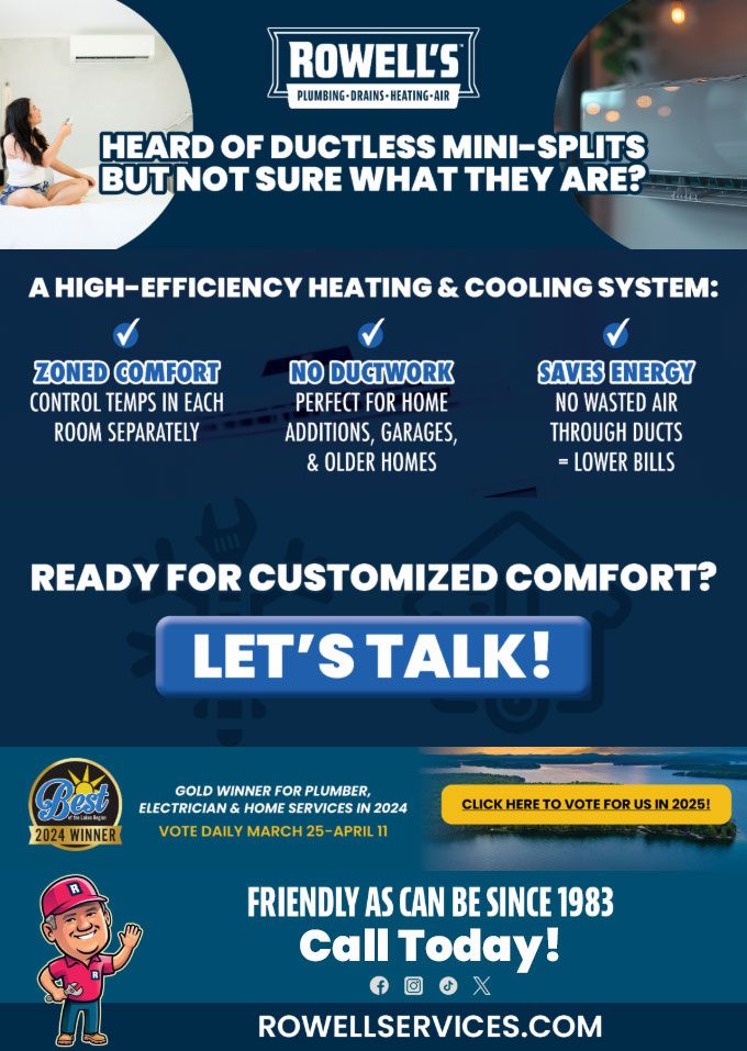 "Friendly As Can Be Since 1983!" When you need help with your plumbing, drains, heating, cooling or electrical in Warner, you can always rely on Rowell's Services! Call us now or book online!